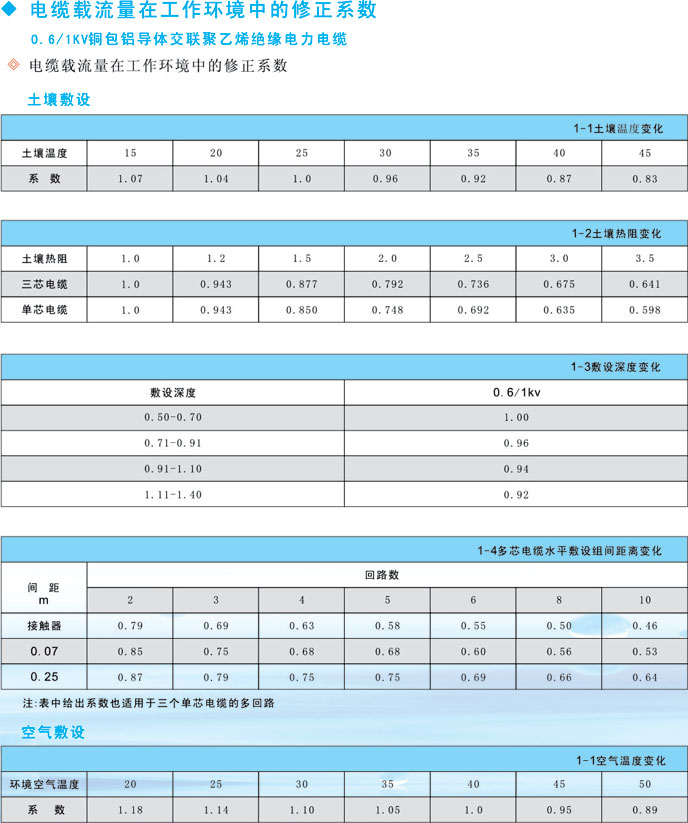 電纜載流量在工作環(huán)境中的修正系數(shù)