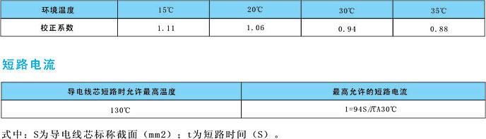 導(dǎo)電線芯最高允許溫度:70℃。